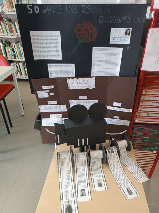 No âmbito das comemorações dos 50 anos do 25 de Abril de 1974, os alunos de HGP ( 2° ciclo) realizaram diversos trabalhos e cartazes sobre o tema, que se encontram expostos na Biblioteca Escolar.